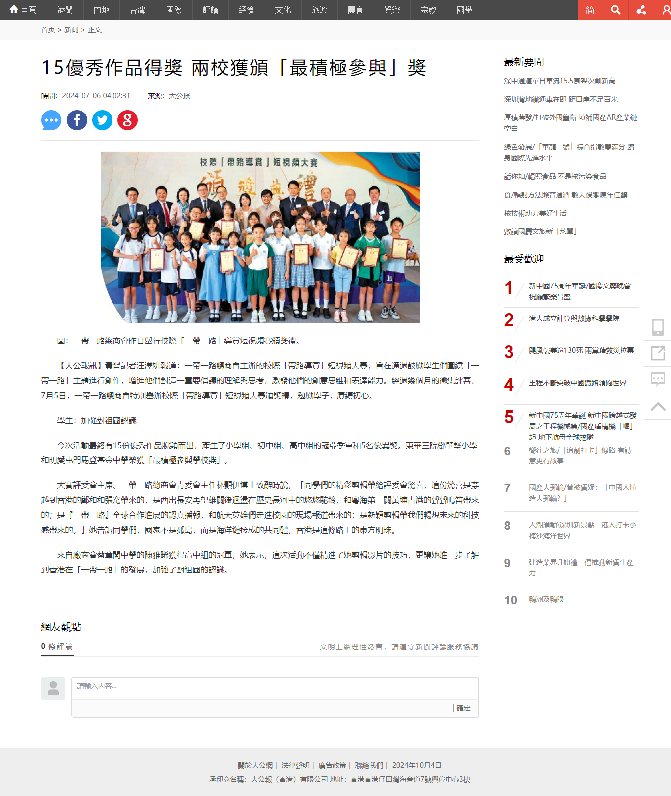 《大公網》報導
